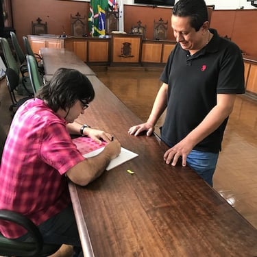 Mococa, 07 de junho de 2025 – Em um sábado que se desenhou memorável para a cultura e a educação ambiental em Mococa, a Câmara Municipal abriu suas portas para um evento que transcendeu a formalidade, mergulhando no universo lúdico e reflexivo da literatura. Durante a cerimônia de encerramento da Semana do Meio Ambiente 2025, a manhã foi palco para o lançamento de "Um lobo-guará gosta de refri?", a mais recente obra infantojuvenil do aclamado escritor Antonio Geraldo Figueiredo Ferreira com ilustrações de Laura Morgado.